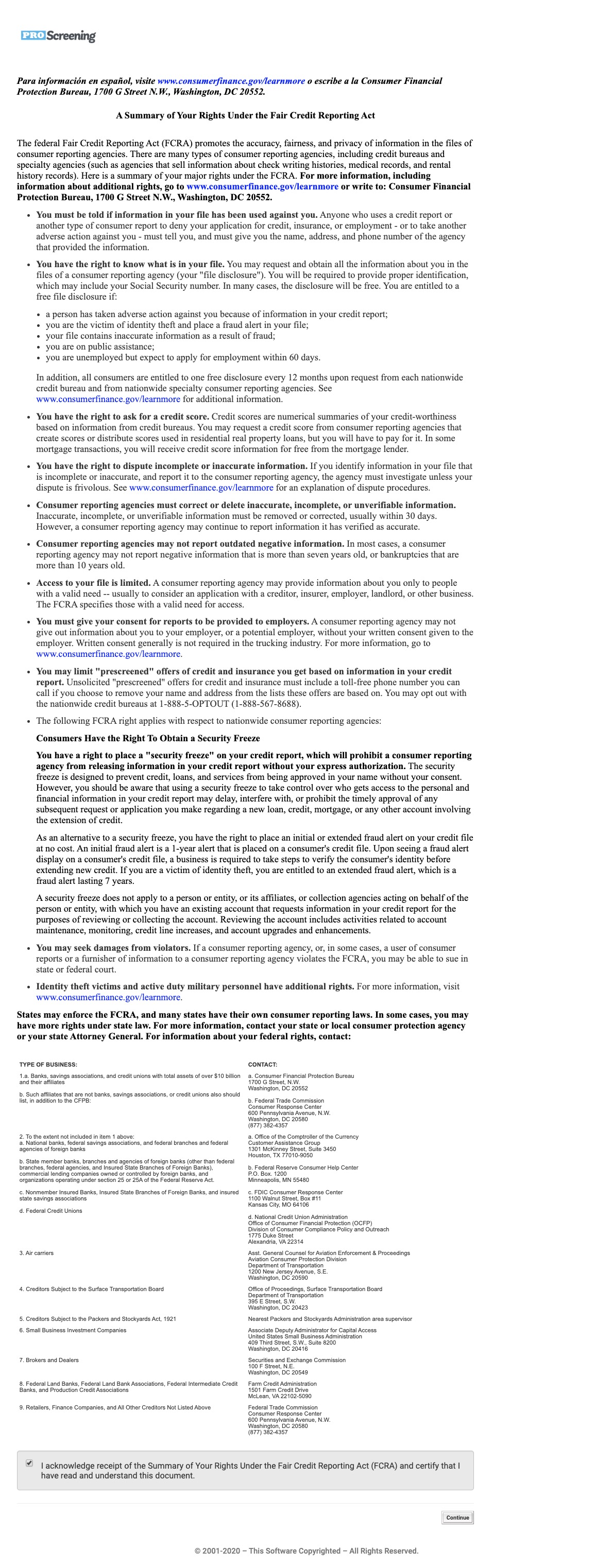 Applicant acknowledges receipt of 'A Summary of Your Rights Under the FCRA'