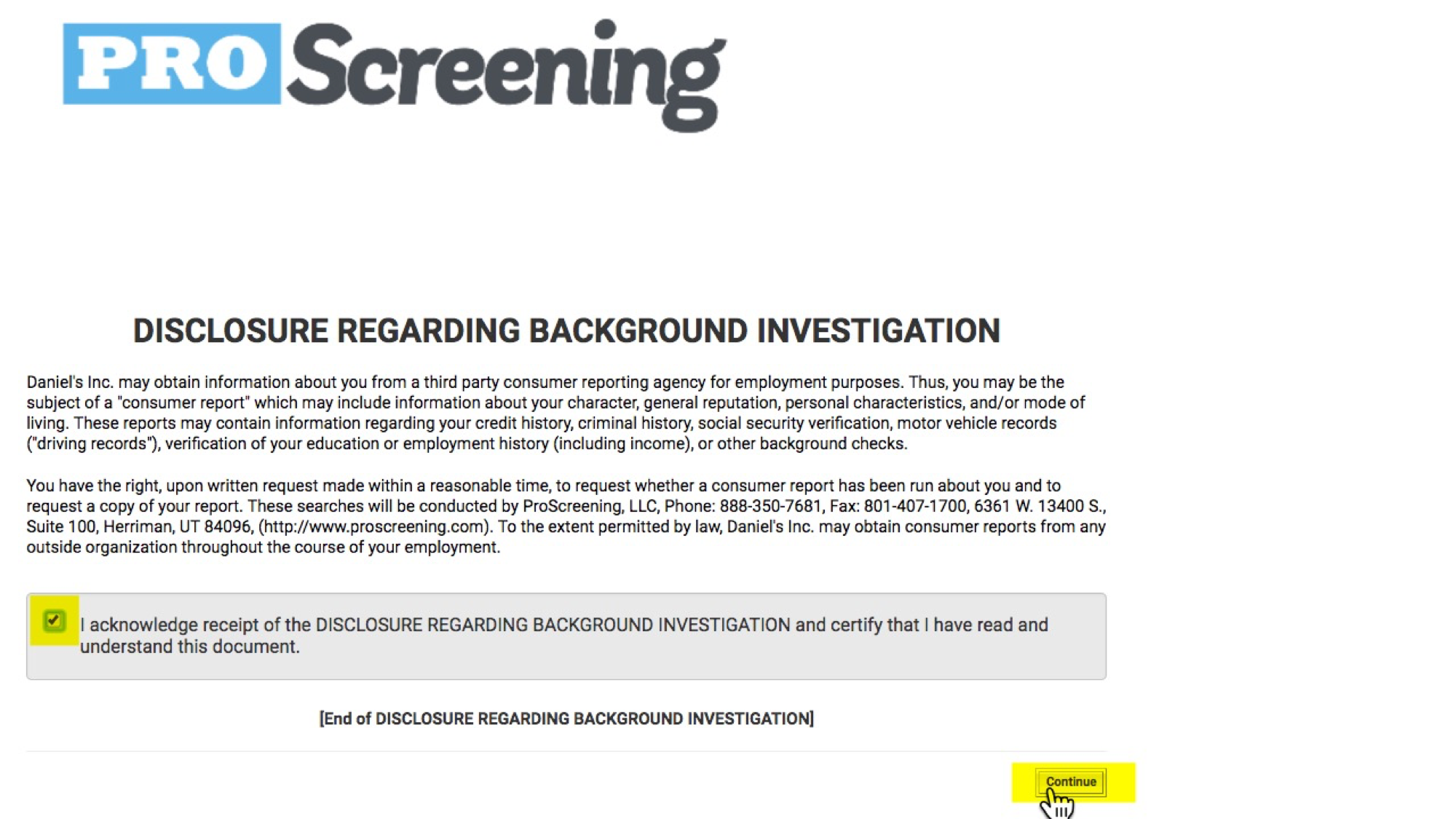 Applicant acknowledges receipt of 'Consumer Report' disclosure